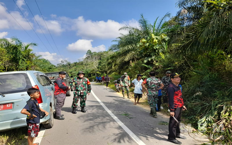 MahesaMediaCenter, Bengkayang – Jajaran Koramil 1209-01/ bersama lapisan masyarakat melaksanakan karya bakti membersihkan tepi jalan dan parit di Jalan Sayung Bana Kec. Teriak, Kab. Bengkayang. Jumat (15/3/24).