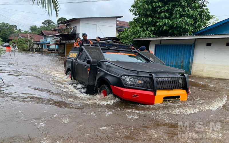 Selain membantu mendistribusikan bantuan disini kami juga membantu masyarakat untuk melintasi jalan yang terendam banjir serta membantu masyarakat untuk mendorong kendaraan mereka yang mogok saat melintasi banjir” ucap Iptu Sayudi A.Md., Kes