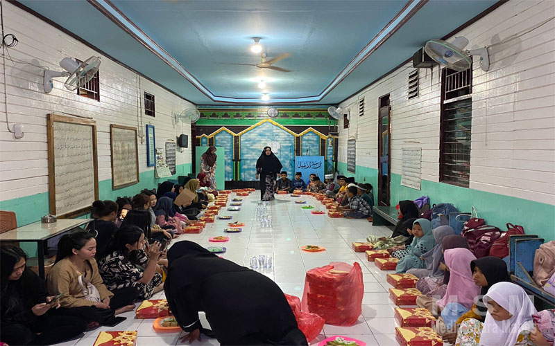 Kegiatan tersebut meliputi pembagian takjil dan buka puasa bersama, dihadiri oleh para santri, pengurus pondok pesantren, tim Tiara Manajemen, dan anggota KNH.