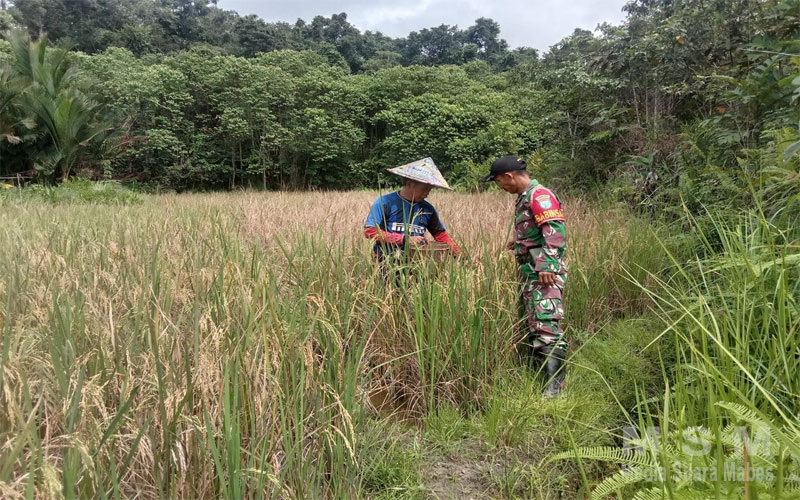 Wujud dukungan TNI khususnya prajurit kewilayahan yaitu Babinsa dalam mendukung ketahanan pangan, dengan Semangat ikut serta terjun langsung ke sawah bantu para petani desa binaannya saat memanen padi, inilah yang dilakukan oleh Babinsa kepada para petani warga desa binaannya.