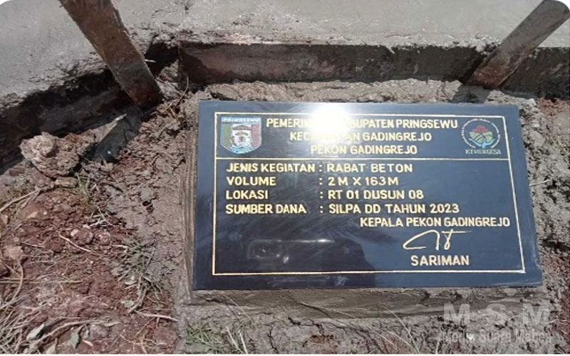 Menurut, Kepala Pekon gadingrejo sariman,program pembangunan rabat beton ini menggunakan dana Silpa Dana Desa (DD) tahun anggaran 2023.