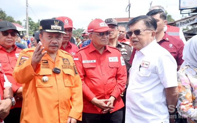 MahesaMediaCenter, Agam – Bupati Agam Dr H Andri Warman MM dampingi Ketua Palang Merah Indonesia (PMI), Jusuf Kalla di Posko Tanggap Darurat Bencana, di Nagari Bukit Batabuah, Kecamatan Candung, Selasa (14/5).