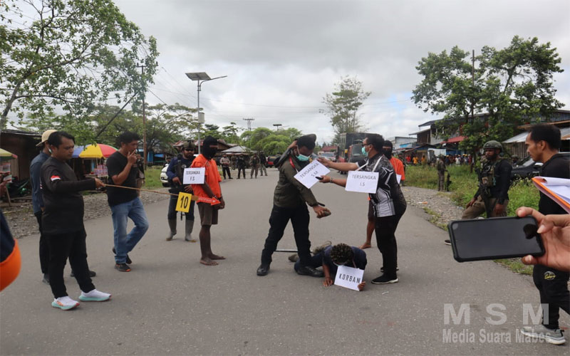 MahesaMediaCenter, Yahukimo – Kepolisian Resor Yahukimo menggelar reka ulang atau rekontruksi kasus penganiayaan berat yang menyebabkan anggota Polres Yahukimo alm. Bripda Oktavianus Buaran meninggal dunia.