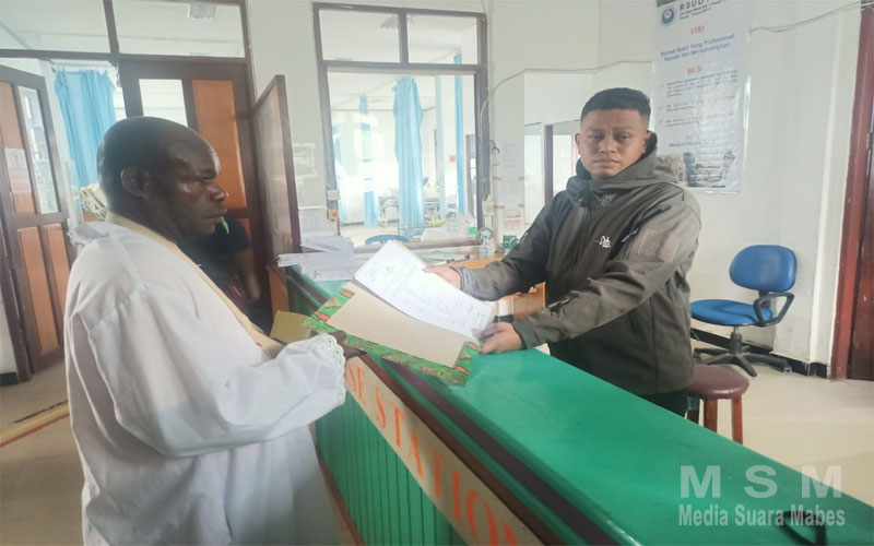 Kapolres Paniai, AKBP Abdus Syukur Felani, S.I.K, melalui Kasat Reskrim Polres Paniai, Ipda Florentinus J.P. Tegu, S.Tr.K, memimpin langsung proses penyerahan jenazah.