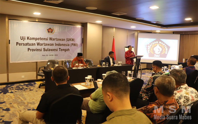 MahesaMediaCenter, Palu – Kabidhumas Polda Sulteng, Kombes Pol. Djoko WIenartono, menghadiri Uji Kompetensi Wartawan (UKW) yang digelar oleh Persatuan Wartawan Indonesia (PWI) Sulawesi Tengah (Sulteng) bertempat di Ballroom Hotel Aston, Jl. Wolter Monginsidi, Palu, Sabtu (25/5/2024).