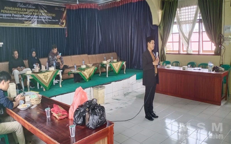 MahesaMediaCenter, Agam – Sebagai bentuk komitmen dan integritas melaksanakan tugas dan tanggung jawab dalam mendukung pelaksanaan demokrasi Ketua KPU Agam , Herman Susilo, hadir dalam pelaksanaan sumpah/janji dan penandatanganan Pakta integritas sekaligus pelantikan PPS (Panitia Pemilihan Kecamatan) di Pilkada (Pemilihan Kepala Daerah) di Aula SMN 1 Kecamatan Tilatang Kamang kabupaten Agam, Minggu (26/6/24)