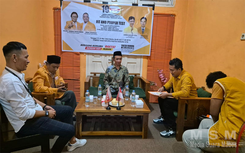 MahesaMediaCenter, Mataram – Jadwal yang diagendakan Pengurus DPD Partai Hanura NTB untuk uji kepatutan dan kelayakan (fit and proper test) bagi bakal calon Kepala Daerah Lombok Timur (Lotim), H.M. Syamsul Luthfi akhirnya terlaksana pada Senin (27/5) malam di kantor DPD Hanura NTB di Mataram. Fit and proper test bagi HM. Syamsul Luthfi tersebut di dampingi oleh Sekretaris DPD Partai Perindo Lombok Timur, Syamsuddin.