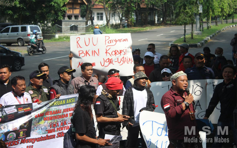 Dalam aksinya ratusan jurnalis Sukabumi Bersatu menyampaikan sikap menolak keras dan mendesak agar sejumlah pasal dalam draf revisi rancangan undang-undang penyiaran yang berpotensi mengancam kebebasan pers agar dicabut.