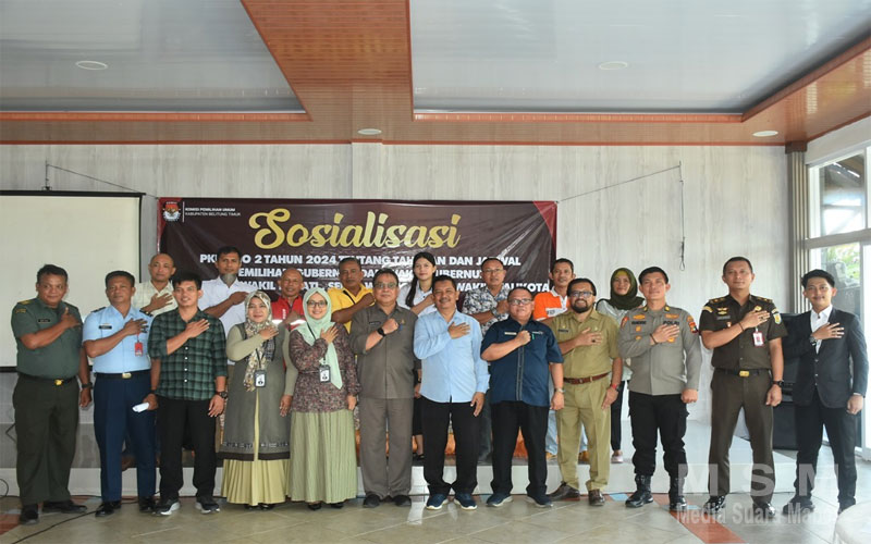 Sosialisasi PKPU Nomor 2 tahun 2024 ini dibuka oleh Asisten III Bidang Adminitrasi Umum Haryoso. Hadir pula Kepala Dinas Komunikasi, Informatika, Statistik dan Persandian Bayu Priyambodo, Kepala Badan Kesatuan Bangsa dan Politik Evi Nardi, Forkopimda Kabupaten Beltim serta perwakilan parpol.(ramli).