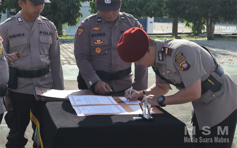 MahesaMediaCenter, Landak Kalbar ~ Kapolres Landak, AKBP I Nyoman Budi Artawan, S.H., S.I.K., M.M., memimpin langsung pelaksanaan mutasi belasan jabatan di lingkungan Polres Landak. Upacara serah terima jabatan (sertijab) sekaligus Penandatanganan berita acara Sertijab, berita acara sumpah, fakta integritas dan komitmen integritas yang berlangsung di halaman Mapolres Landak berjalan dengan aman dan lancar, ” Selasa (28/5/2024)