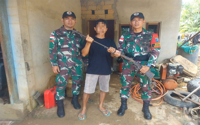 Anjangsana dan sosialisasi yang dilakukan oleh personel Satgas berbuah hasil setelah saudara G menginformasikan kepada personel Pos Segumon bahwa yang bersangkutan memiliki dan menyimpan senjata api rakitan jenis Bomen di rumahnya. Senjata api tersebut ia pergunakan untuk berburu.