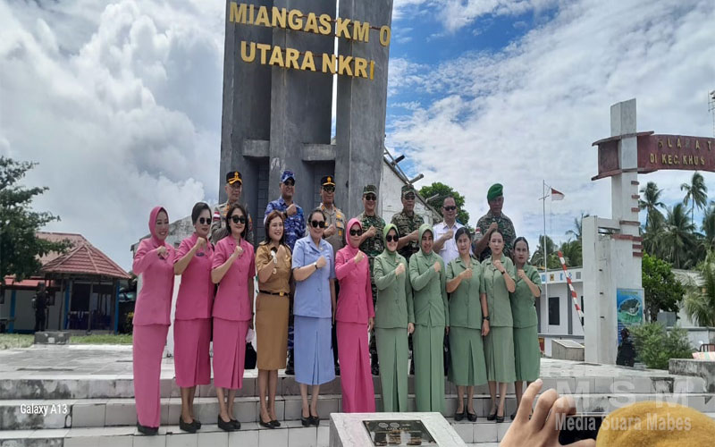 Kapolda Sulut dan Ketua Bhayangkari Daerah Sulawesi Utara bersama Pangdam XIII/Mdk serta Rombongan kemudian bergerak menuju Mako Koramil 1312-07 Miangas dan melaksanakan foto bersama di tuguh titik nol ujung utara NKRI.