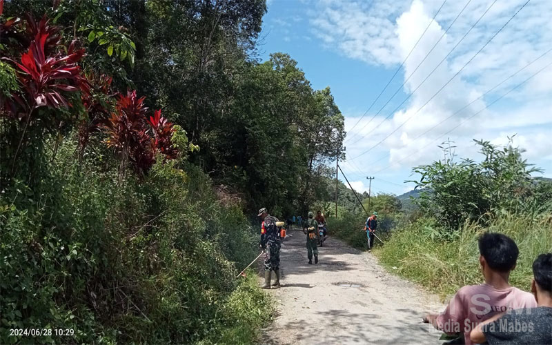 “Kerja bakti ini dilakukan, karena kondisi kiri kanan jalan mulai ditumbuhi rerumputan ditambah lagi ranting pepohonan mulai menutupi jalan, sehingga pandangan pengendara sedikit terhalang dan apabila hal ini dibiarkan tidak menutup kemungkinan bisa terjadi Laka Lantas,” ujarnya.