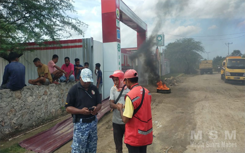 MahesaMediaCenter, NTT – Selain menggelar aksi mogok kerja, para buruh ini juga menyegel seluruh pintu masuk kantor dan membakar ban bekas didepan pintu kantor proyek.