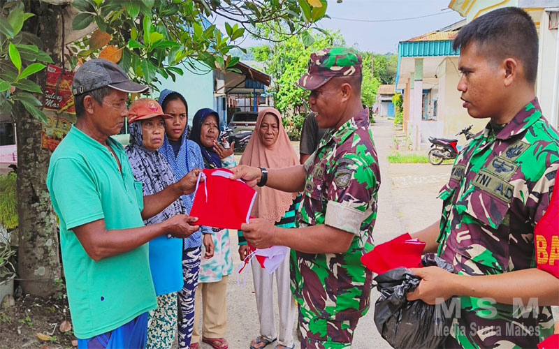 Sambut (HUT RI) Ke-79, Koramil 1202-03/Singkawang Tengah Bagikan Bendera Merah Putih Kepada Masyarakat