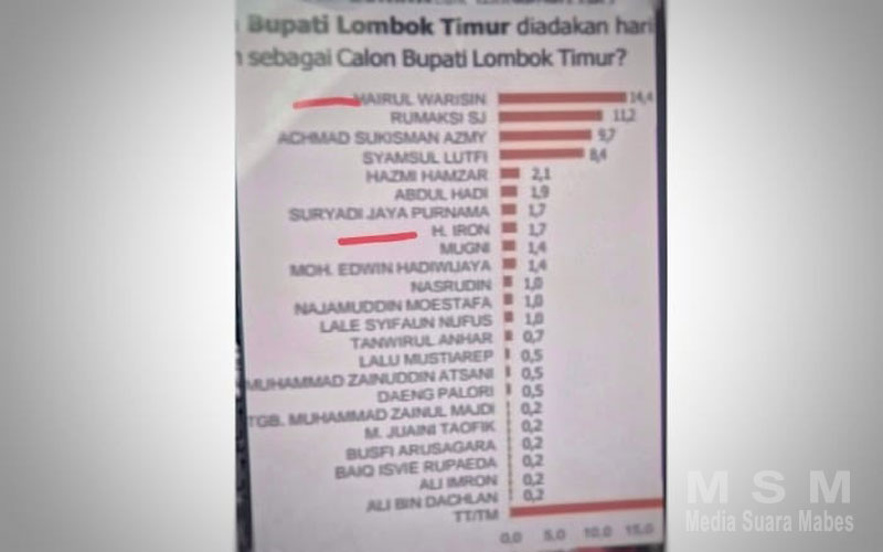 Juru bicara tim pasangan bakal calon bupati dan wakil bupati Lombok Timur, Syamsul Luthfi- Abdul Wahid (Luthfi-Wahid), Heri Sabri menyayagkan ada sejumlah pihak atau calon tertentu yang sengaja memanipulasi hasil survei untuk mengecoh publik.