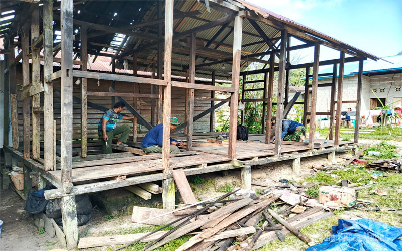 Sementara itu Jagul (58) dan keluarga selaku pemilik rumah yang di rehab mengaku senang karena TNI dalam hal ini Kodim 1210/Landak melalui program TMMD rehab rumah tidak layak huni miliknya.