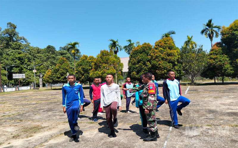 MahesaMediaCenter, Bengkayang – Babinsa Koramil 07/Jgb,Sertu Servi Riyono, laksanakan kegiatan melatih Pasukan Pengibar Bendera (Paskibra) di Halaman Kantor Camat Jagoi Babang, Kec.Jagoi Babang,Kab.Bengkayang,dalam rangka Kesiapan Paskibra Tingkat Kecamatan Menjelang HUT Ke-79 Republik Indonesia. Selasa (30/7/24).