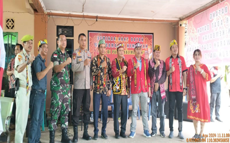 MahesaMediaCenter, Kembayan – Babinsa Desa Kelompu Koramil 04/Kembayan, Serka Santoso Paul menghadiri undangan seminar Adat dengan Tema ‘IKN dipulau Kalimantan’ dan Musyawarah adat Sub suku Hibun Majo yang berada diwilayah Ketemunggunan Panco benuo, yang bertempat di rumah Temenggung Panco Benuo tepatnya di Desa Kelompu, Kecamatan Kembayan Kabupaten Sanggau, Jumat (02/08/2024).