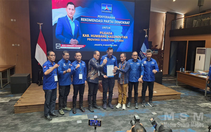 MahesaMediaCenter, Jakarta – Partai Demokrat menyerahkan Surat Rekomendasi kepada Calon Bupati Humbang Hasundutan Bapak Irwan Simamora SH & wakil calon Bupati Ir. Sadar Sinaga untuk Pilkada bulan November 2024 mendatang.