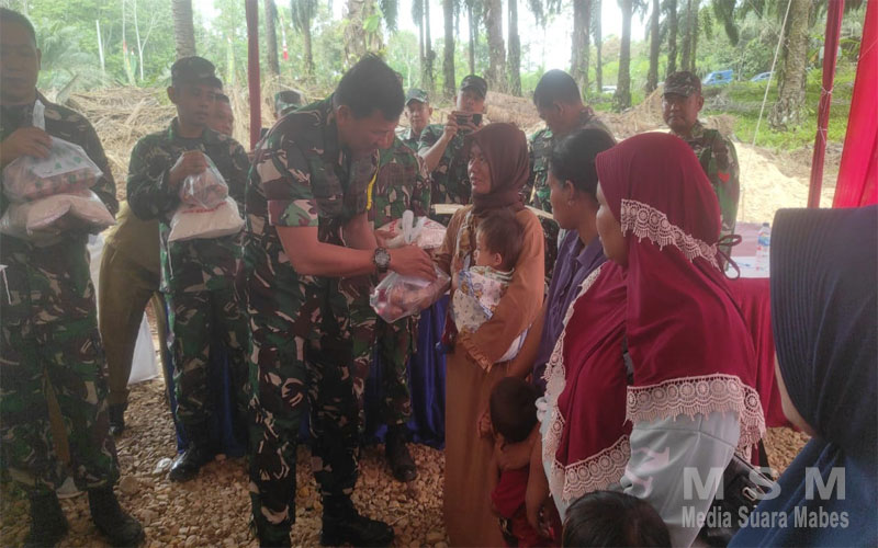 Sejumlah bantuan yang diserahkan berupa Al Qur’an, sarana olahraga, paket makanan tambahan untuk balita, perlengkapan sekolah. Bantuan ini merupakan bentuk kepedulian sosial satgas TMMD dengan masyarakat yang menjadi sasaran TMMD.