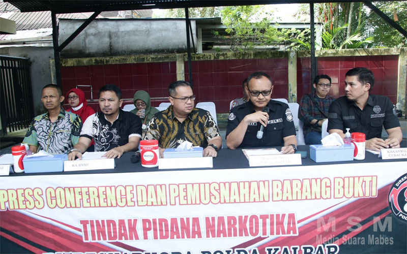 Konferensi pers ini di pimpin oleh Dirresnarkoba Kombes Pol Thelly Iskandar Muda S.I.K., serta dihadiri kabidhumas Polda Kalbar Raden petit wijaya, S.I.K , M.M , Jaksa Kejati Jumriadi SH.MH, dari Balai POM sukmawati, Konwil BJBC, Wahyu w dan Kepala BNN prov Kalbar