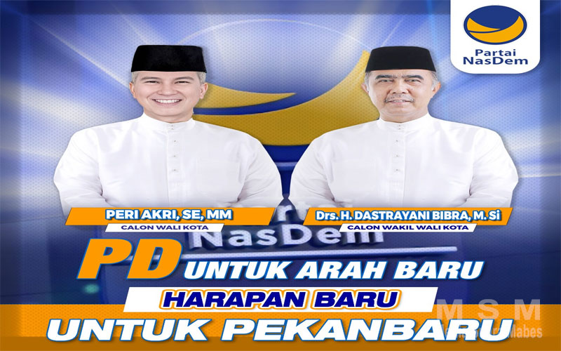MahesaMediaCenter, Pekanbaru – Dalam perkembangan politik yang signifikan, Partai NasDem secara resmi mengumumkan dukungannya terhadap pasangan Peri Akri dan Dastrayani Bibra sebagai Calon Walikota dan Wakil Walikota Pekanbaru. Langkah ini menegaskan komitmen partai untuk meraih peran penting dalam pemilihan kepala daerah yang akan datang.