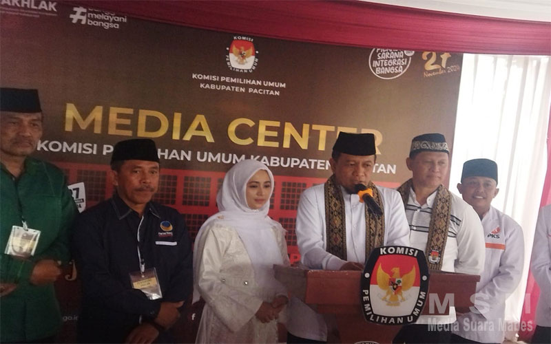 Setiba di Kantor KPU dihari kedua pembukaan pendaftaran Cabup dan Cawabup Pacitan Paslon Ronny – Wahyu tanggal 28 Agustus 2024 untuk Pilkada serentak 27 November 2024 yang didampingi lebih dari 100 orang dari Timses, Pengusung Partai dan Relawan, resmi mendaftarkan.