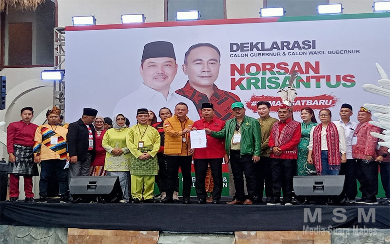 MahesaMediaCenter, Pontianak Kalbar – Bakal Calon Gubernur dan Wakil Gubernur Provinsi Kalimantan Barat, Drs. H. Ria Norsan, MM, MH (Cagub Kalbar) Krisantus Kurniawan, S.IP, M.Si (Cawagub) Kalbar periode 2025 – 2030 menggelar deklarasi serta orasi politiknya didepan para pendukung dan simpatisan yang dipusatkan di sebuah Kafe Kluwi Jl. Sultan Abdurahman, Pontianak Kota. Kamis (29/8/2024).