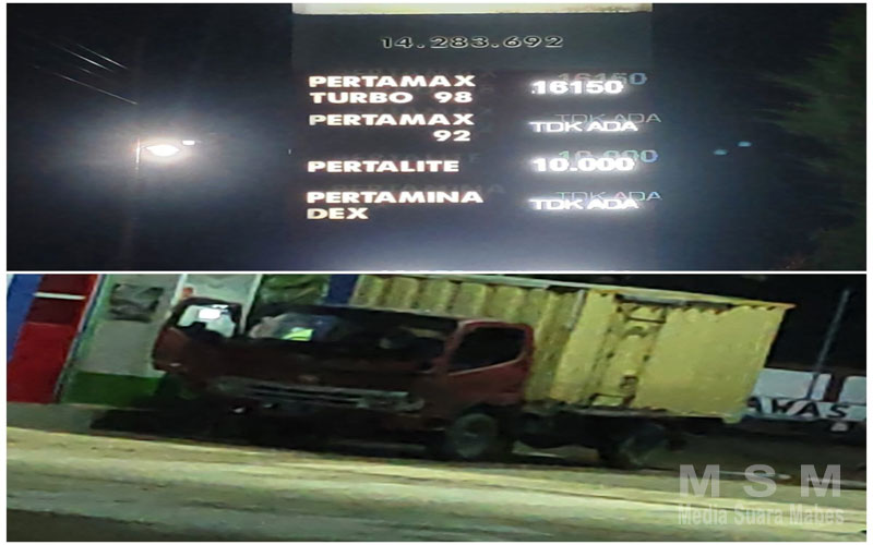 Mobil truk coltdiesel yang tengah parkir pengisian tersebut saat disidak awak tim menemukan bahwa di bak truk coltdiesel, ada 2 sampai 3 baby tank yang akan di isi oleh petugas SPBU