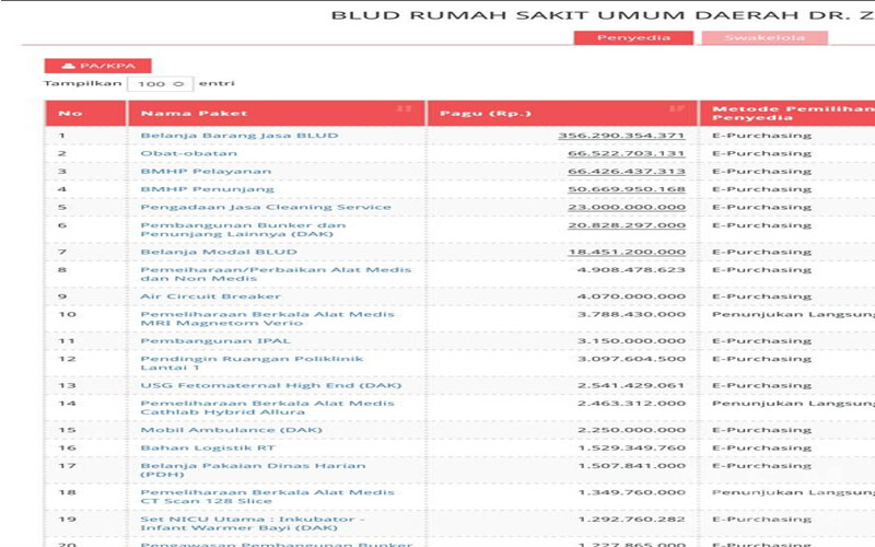Seharusnya Penguuna Anggaran dalam hal ini Direktur Rumah Sakit ZA memuat dalam SiRUP sesuai dengan paket yang dianggarkan sehingga masyarakat mudah memantau atau mengontrol item apa saja yang dibutuhkan pihak Rumah Sakit bukan dengan menggabungkan satu paket dalam jumlah besar.
