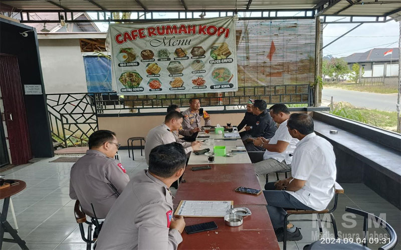 MahesaMediaCenter, Landak Kalbar ~ Pada hari Rabu, 4 September 2024, Kapolres Landak AKBP Siwo Dwi Nugroho, S.H., S.I.K beserta Pejabat Utama (PJU) Polres Landak melaksanakan kegiatan Cooling System Polres Landak yang bertempat di Cafe Rumah Kopi, Jalan Ilong, Desa Raja, Kecamatan Ngabang, Kabupaten Landak. Kegiatan ini juga dihadiri oleh penyelenggara Pilkada, yaitu Komisioner KPU Kabupaten Landak Musa, S.Pd dan Ketua Bawaslu Kabupaten Landak Barto Agato Dirgo, S.H.