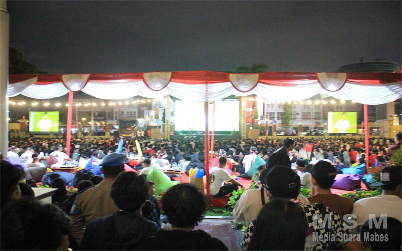 MahesaMediaCenter, Yogyakarta – Ribuan warga Yogyakarta memadati lapangan Mapolda DIY pada Selasa malam (10/9/2024), dalam acara nonton bareng (nobar) pertandingan kualifikasi Piala Dunia 2026 antara Timnas Indonesia melawan Australia. Meski pertandingan berakhir imbang dengan skor 0-0, antusiasme penonton tetap tinggi sepanjang acara.