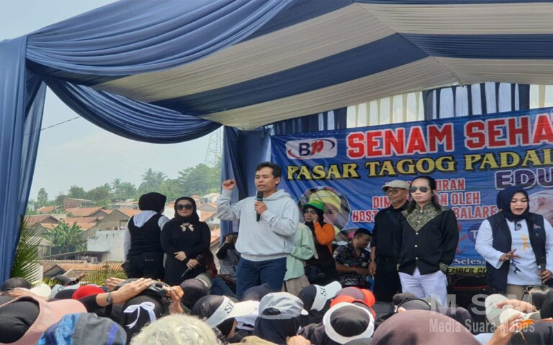 MahesaMediaCenter, KBB – pasangan calon (Bapaslon) Bupati Bandung Barat Edi Rusyandi dan Wakil Bupati Unjang Asari mengadakan Senam sehat bersama ratusan Ibu – Ibu dan kaum melinial di Karpak lantai3 pasar moderen Padalarang dengan berbagi hadiah Dorprez di bantu dengan panitia pelaksana untuk dukungan dari ber bagai komunitas senam di Kabupaten Bandung Barat (KBB).