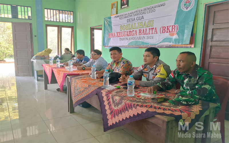 MahesaMediaCenter, Bengkayang – Anggota Koramil 02/Sgl,Serda Agus Purnomo hadiri kegiatan sosialisasi Bina Keluarga Balita (BKB) di Aula Desa Gua Kec.Sanggau Ledo,Kab.Bengkayang. Sabtu (28/9/24).