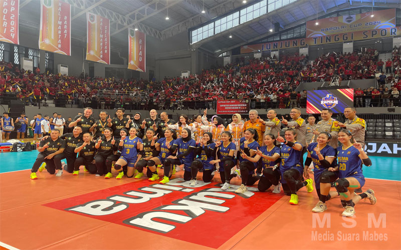 MahesaMediaCenter, Pontianak Kalbar – Tim Voli Putri Kalimantan Barat (Kalbar) berhasil mempertahankan gelar juara Kapolri Cup setelah mengalahkan Tim Voli Putri Jawa Timur dengan skor 3:0 dalam final yang berlangsung pada Sabtu, 12 Oktober 2024, di GOR Terpadu A. Yani, Pontianak. (Sabtu, 12/10/2024)