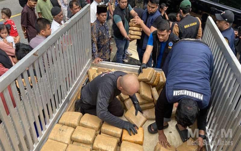 MahesaMediaCenter (MSM Group), Sumbar – Badan Narkotika Nasional (BNN) berhasil menggagalkan upaya peredaran gelap narkotika golongan I jenis ganja dari Aceh, Gayo Lues ke Sumatera Barat. Tujuh orang pelaku berinisial K, R, P, Z, E, H, dan RK diamankan beserta barang bukti seberat 624.507,41 gram. Pengungkapan ini merupakan hasil join operation bersama Bea dan Cukai Teluk Bayur, Padang, Sumbar.