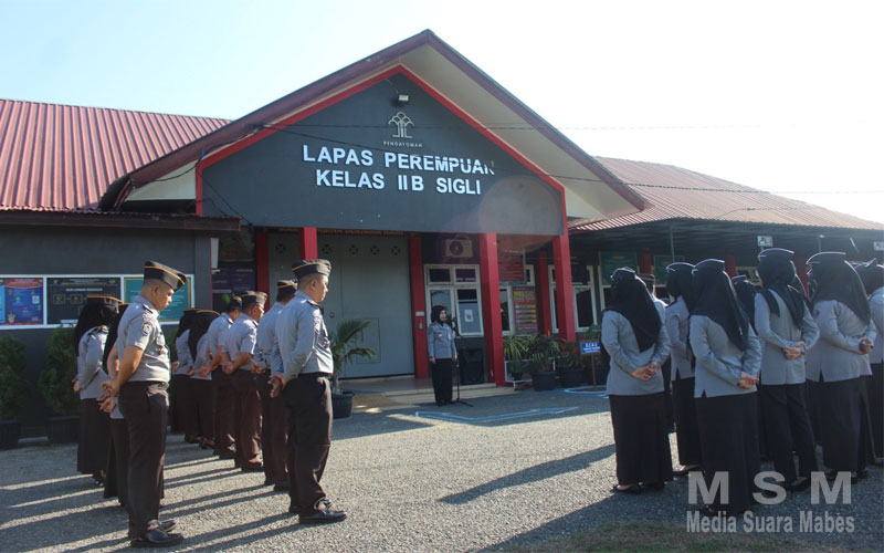MahesaMediaCenter (MSM Group), Sigli — Dalam apel pagi yang digelar di lapangan kantor Lembaga Pemasyarakatan (Lapas) Perempuan Kelas IIB Sigli, Kalapas Perempuan Sigli, Endang Margiati mengajak seluruh pegawai untuk mendukung program kerja kabinet baru yang diluncurkan oleh pemerintah, Senin (21/10/2024).