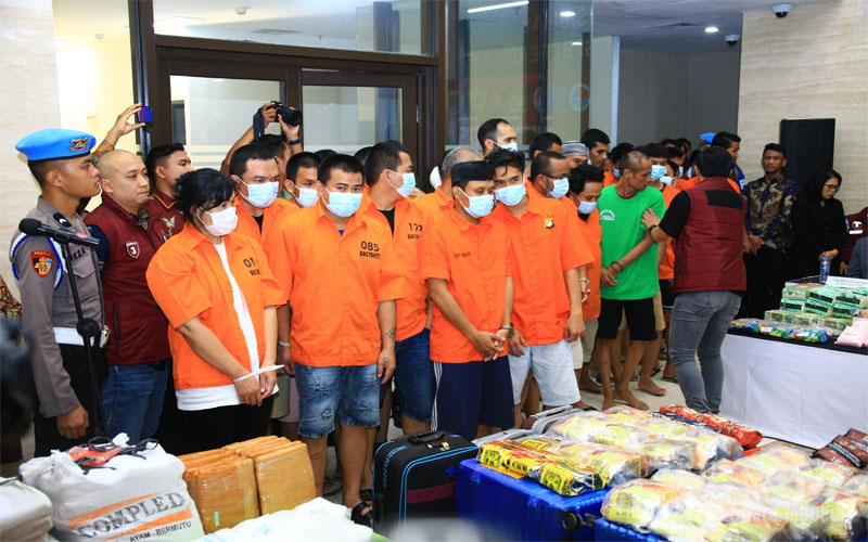 Dari 80 perkara tersebut, Polri telah menetapkan 136 tersangka. Adapun barang bukti yang berhasil disita yaitu sabu seberat 1,7 ton, ganja 1,12 ton, ekstasi 357.731 butir, ketamin 932,3 gram, double L 127.000 butir, kokain 2,5 kilogram, tembakau sintetis 9 kilogram, hasish seberat 25,5 kilogram, MDMA 4.110 gram, mepherdrone 8.157 butir dan happy water 2.974,9 gram.