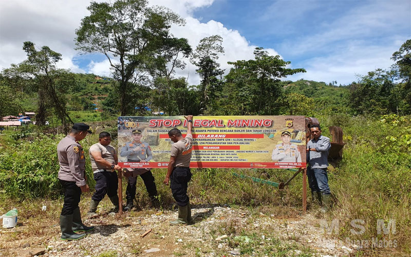 “Selain melaksanakan sosialisasi, kita juga melakukan pemasangan spanduk atau banner tentang imbauan dan larangan aktivitas PETI di beberapa tempat atau titik yang ada aktivitas PETI,” jelas Ipda Muhammad Rizal, SKM, MH.