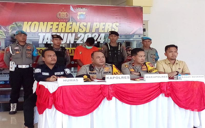 MahesaMediaCenter (MSM Network), Babel – Kapolres Beltim,AKBP Indra Feri Dalimunthe.,SH.,SIK.,MH.,pimpin langsung Konferensi Pers terkait kasus pembunuhan di Wilkum Polres Beltim, pada hari kamis,14/11/2024.Dimana dalam Konferensi Pers Kapolres Beltim di dampingi Wakapolres Beltim,Kasat Reskrim dan Kasubsi PIDM si Humas Polres Beltim di Joglo Graha Patritama Polres Beltim.