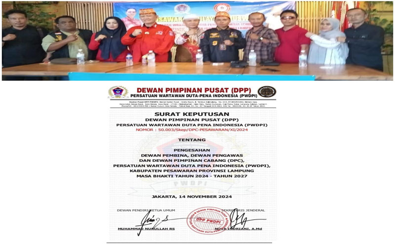 Arohman R.SE telah mendapatkan SK sebagai ketua PWDPI DPC Pesawaran dari Dewan Pimpinan Pusat (DPP), menegaskan bahwa dengan terbentuknya kepengurusan yang solid, pihaknya siap menghadapi tantangan ke depan dan memperjuangkan hak-hak wartawan.
