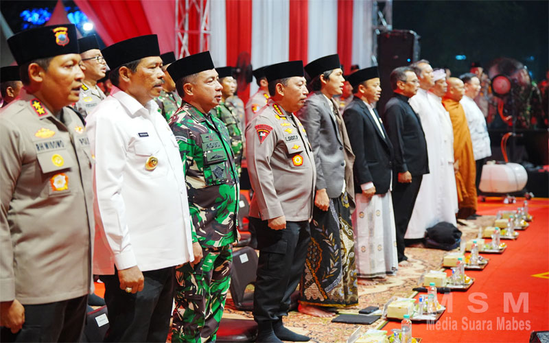 MahesaMediaCenter (MSM Network), Semarang – Kapolri Jenderal Polisi Drs. Listyo Sigit Prabowo dan Panglima TNI Jenderal Agus Subiyanto menghadiri doa bersama lintas agama, TNI, Polri, dan masyarakat dalam rangka Pilkada Serentak 2024 di Semarang, Jawa Tengah (Jateng). Kegiatan doa lintas agama ini diisi ceramah kebangsaan oleh Gus Iqdam (Muhammad Iqdam Kholid).