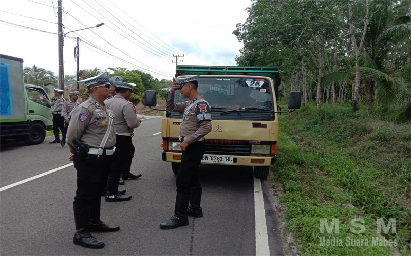 MahesaMediaCenter (MSM Network), Belitung – Dinas Perhubungan Kabupaten Belitung bersama TNI dan Polri melakukan razia pengujian kendaraan bermotor atau KIR terhadap kendaraan angkutan barang di titik lokasi di simpang Petikan, Desa Sungai Samak, Kecamatan Badau, Kabupaten Belitung. Jumat (29/11/2024).