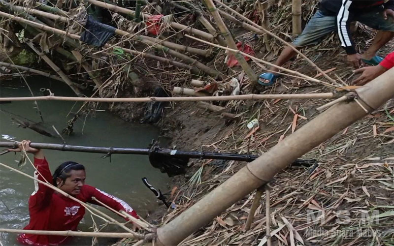 Selain membersihkan sampah dan pohon tumbang Tim Rehab kali cikarang juga mengangkat bambu, yang menjuntai ke sungai di jadikan penahan bantaran kali (DAS) agar tak lagi abrasi.