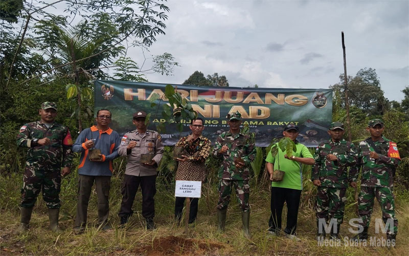 Danramil 02/Sgu Ledo,Pelda Hamdani mengatakan, Karya Bakti penanaman rangkaian memperingati Hari Juang TNI-AD, kegiatan ini bertujuan untuk meningkatkan ekosistem dalam menjaga lingkungan dan pelestarian alam.