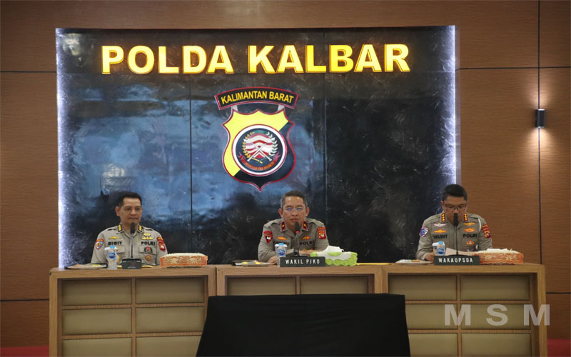 Acara ini dipimpin oleh Wakapolda Kalbar Brigjen Pol. Roma Hutajulu, S.I.K., M.H., yang dihadiri oleh pejabat utama serta personil yang terlibat operasi dan diikuti secara daring oleh Polres jajaran.
