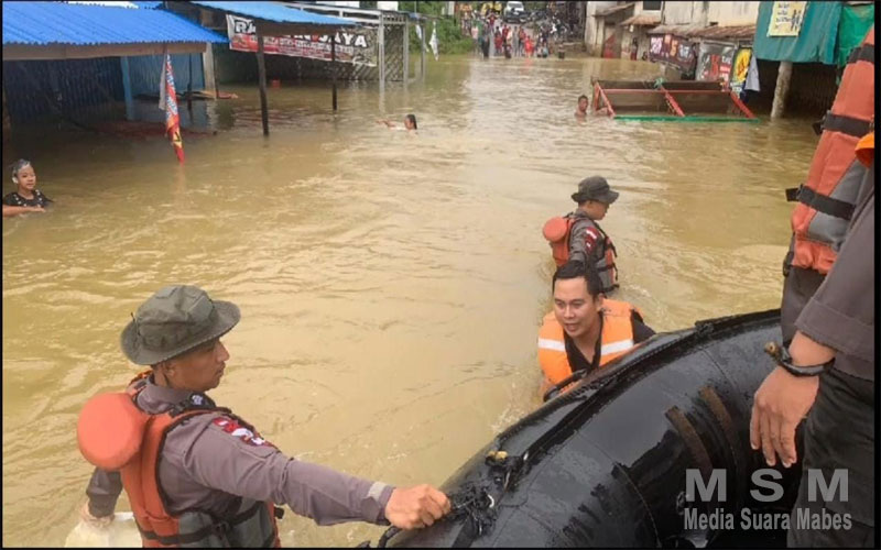 “Tingginya genangan air akibat banjir ini telah menghambat bahkan menghentikan aktivitas warga, namun tim kami terus standby di lokasi untuk memberikan bantuan SAR.” kata Kabidhumas.