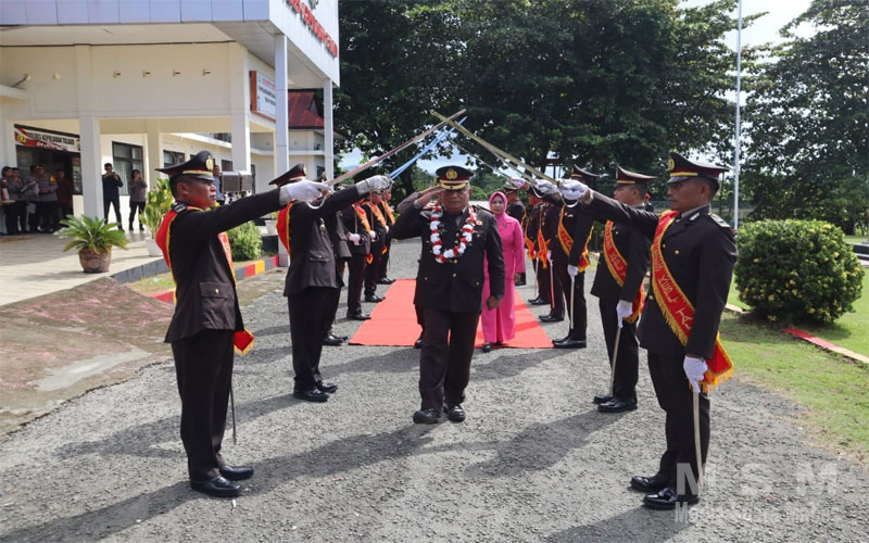 MahesaMediaCenter (Jaringan MSM), Talaud – Polres Kepulauan Talaud menggelar upacara pelepasan Wakapolres Kepulauan Talaud Kompol Bartol Bawole yang telah memasuki pensiun (purna tugas) dalam kegiatan Wisuda Purna Bhakti yang dipimpin oleh Kapolres Kepulauan Talaud AKBP Arie Sulistyo Nugroho , SIK,MH didampingi Ketua Bhayangkari Cabang Kepulauan Talaud Ny.Hikma Arie Sulistyo yang dilangsungkan halaman Mapolres Kepulauan Talaud, Sabtu, 25/1/2025 Pagi.