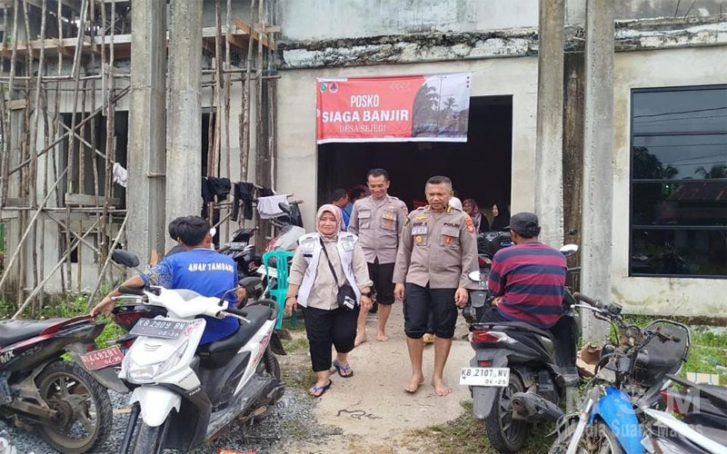Dipimpin oleh Karumkit Bhayangkara Polda Kalbar Kombes Pol. drg. Josep Ginting, MARS., M.Si. dan didampingi Kepala Dinas Kesehatan Provinsi Kalbar dr. Erna Yulianti, tim Biddokkes Polda Kalbar mengunjungi lokasi pengungsian warga terdampak banjir di Kabupaten Mempawah.